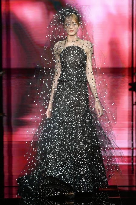 Giorgio Armani con su colección Armani Privé cerró este día de grandes colecciones, aires españoles se percibían sobre la pasarela inundada de mantillas, volantes y una fuerte apuesta al rojo y negro, ropa para disfrutar en el detalle.